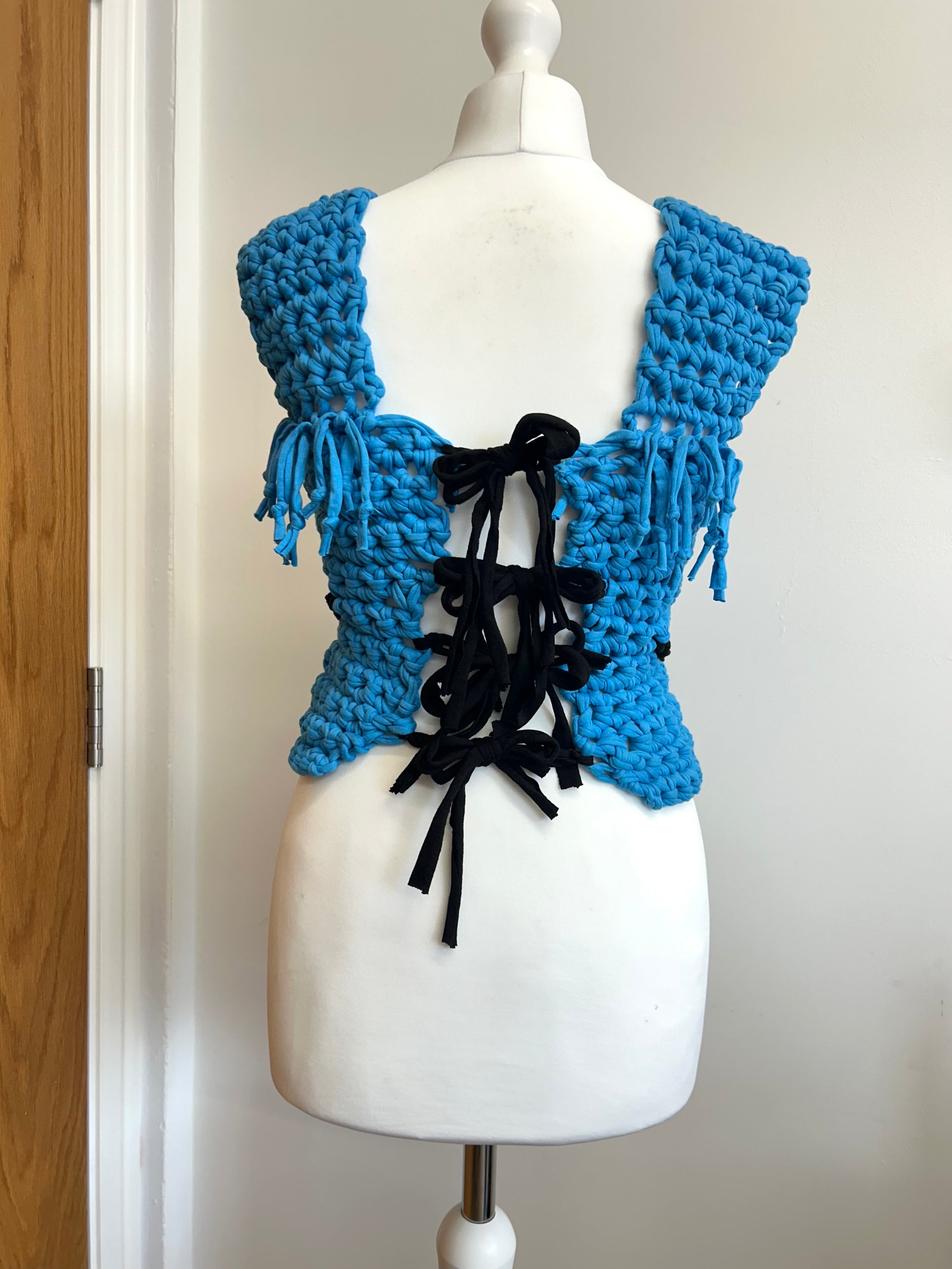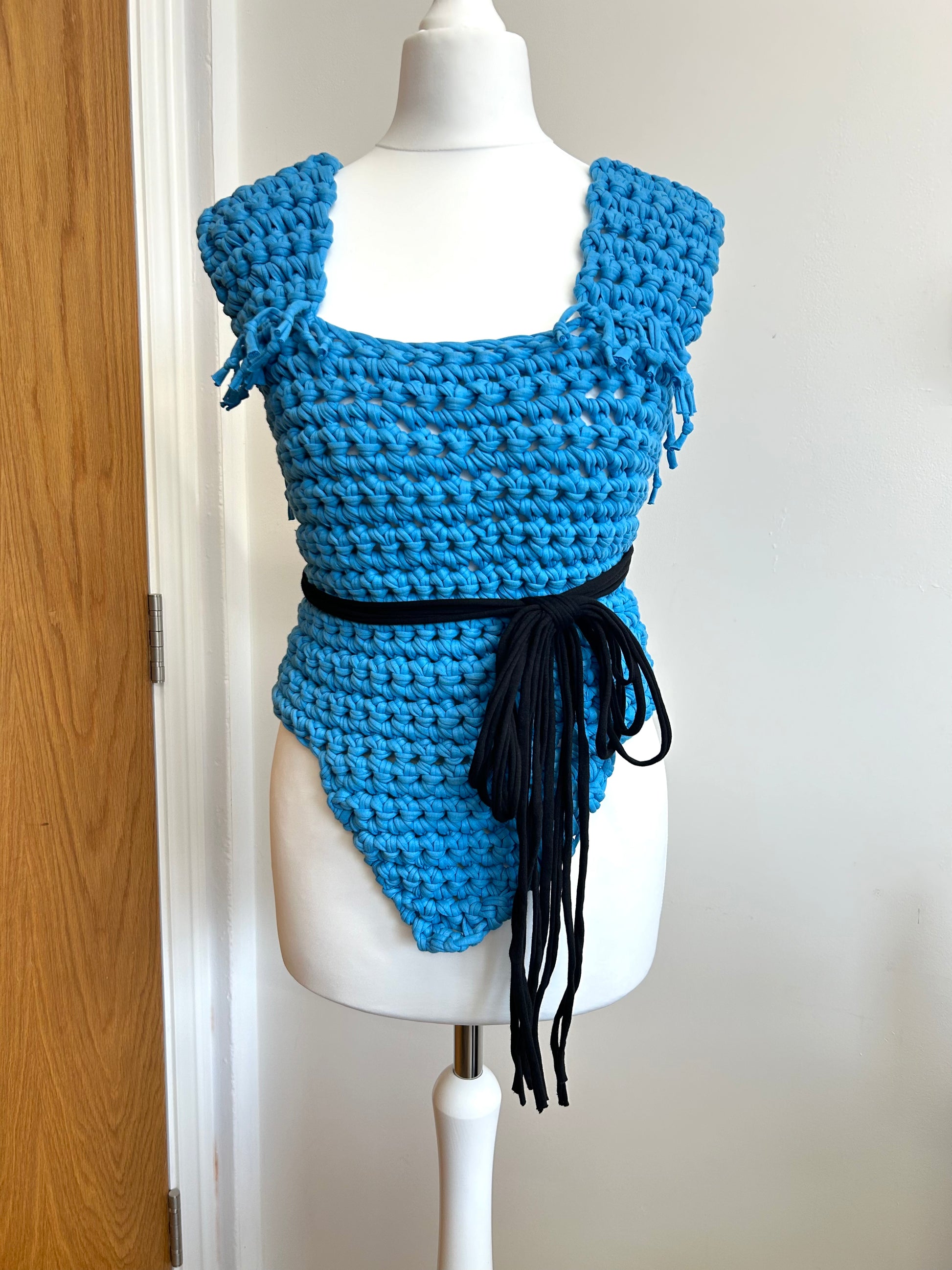 - Crochetted using ribbon yarn